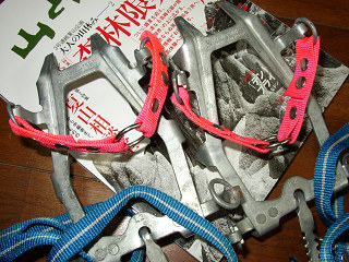 サレワの12本歯アイゼン。西ドイツという国があったときのものだ。何度も山でお世話になった。基本は一本締めのアイゼンベルトを使用する形なのだが。一本締めは足先から不安定になる弱さがあった。当時販売されていたものとしては固定式ベルトというものがあったがこれまた、ビスで圧着する心許ないもの。一度山で切れたら悲惨きわまりない。そこで考えたのが固定式と一本締めの併用スタイル。前の部分は固定式。それ以外は一本締めで締め込んだ。かなりの強度でガタつくこともなく。氷に噛みついた。そうそう、アイゼンなんだけど一番困るのは雪を噛んで下駄状態になってしまうこと。低温で金属と言うこともあり噛みついた雪は岩に蹴りつけてもなかなか落ちない。なのでここで模型の登場。雪の付着を押さえるものとして当時使っていたのが「クリアラッカー」。スプレーで吹き付ける。光沢も出て美しくもなるが何と言っても雪が付きにくい。変なところで模型の知識が役に立ったのだ。