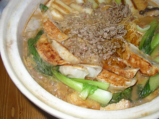寒いから鍋にする。今日はゴマの味がきいた「担々鍋」にする。初めから麺が入っているから担々麺鍋かな。焼いた餃子も一緒に入れて・・・これじゃラーメンと一緒に注文した餃子をぶちまけたみたいだって?そう言えばそうかも知れないが鍋には餃子って合うんだよね。ここに刻み葱山盛り入れれば、もっとラーメンだな。