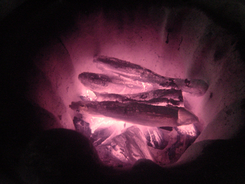 七輪で肉を焼く。炭の炎は見ているだけで癒される。相変わらず舌が痛い。涙