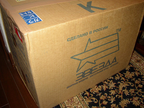 娘に荷物を送る。最近、大学の演習で取り上げたメーカーがタミヤと言うことで、試しに1/48の戦車を何台か組んだらしい。(美大生でやんす)どうも、それ以来、填り込んだみたいで、家に帰って来るなり私の在庫から1/48の戦車ばかり10台ほど選んで、送って欲しいという。妻は家から在庫が少しでも減るのは喜んでいるが、娘が模型に填るのに警戒している。(笑)オヤジはと言うと仲間が一人でも増えるのは心底嬉しい。ウヘウヘ言いながら段ボールに詰める。これって東京のKさんから荷物を送って頂いたときの箱。ロシアの模型メーカーZVEZDAのもの。ホントにレアな箱なんだが・・・・娘のためなら仕方ないッス。(笑)