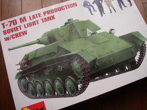 ミニアートのT-70M後期型だ。ミニアートは好きなメーカーの一つ。京都では小さな模型屋では扱っていなくて、市内の大型店舗かボークスあたりまで行かないと手に入らない。以前は木津にタムタムがあって、日曜ごとに遊びに行ったのだが、不安が的中して6が月で撤退した。何しろ、売り場面積が半端ではなく、RCのレース場まで併設していた。隣のフードコートからはガラス越しで中が見えて、珈琲飲みながら疾走する車を見ていた。この場所でこの大きさはまずいんじゃないのと思っていたのだ・・・・残念だ。そんなに模型は安くなかったが、なかなか見ることのない模型のパッケージを眺めては時間があっと言う間に過ぎてしまった。そこで知ったのがミニアート。当然書籍では知っていたが、なかなか、BOXの中まで見ることはなかったからね。B級キットと言われるが、なになに捨てたものじゃなくて味があるキットだ。何よりもフィギアの出来が良い。スベズダは老舗のメーカーであるがフィギアに関してはミニアートの方が圧倒的に良い感じである。T-80は以前オークションで落としていましたが。昨日、T-70を縁あって入手。楽しみです。
