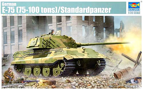 これも新作のE-75。トランペッターキングタイガーにそっくりなんだが、どうよ。大きく違うところは前面の傾斜。避弾径始を考慮に入れて傾斜を35度から30度にしている。従って前面フェンダーの形が違うんだよね。前に張り出した格好になっていてノッペリしている。 こんな感じ。 そうそう、前面に機銃座がないね。だから余計ノッペリしている。しかし、砲身は通常より長くてブレーキマズルも付いていない。試作戦車は面白いね。
