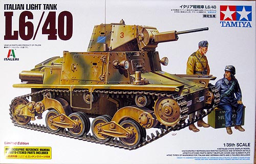 これもボークスで買ってきました。イタレリの秀作です。箱は大きいけれど中身は???さすがに軽戦車という感じです。トーションバーサスペンションを持った如何にもイタリア好みの戦車ですね。この足回りに惚れてしまうなぁ。戦車の第一印象は足回りと履帯。フランスの戦車も好きなんだが、これは別格の趣です。主砲の20ミリ機関砲は当時としては火力不足の感が否めませんが、魅力的です。 リーフレットが付いてこの値段はまずまずです。