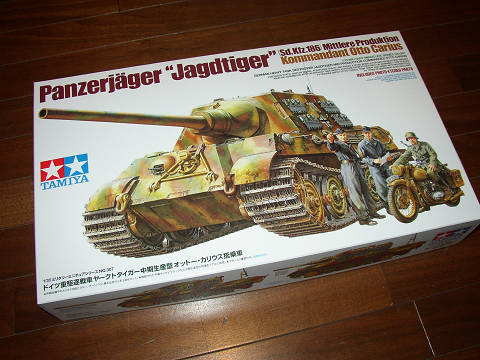 行きつけの模型屋さんに仕事関係で行ってきました。東太郎さんお勧めのオットーカリウス搭乗車。ありました。早速購入。良いですね。待った甲斐がありますね。履帯は2種、ベルト式と組み立て式。ディスプレイにするなら当然、組み立て式かな。モーターライズにも出来るし、良心的じゃありませんか。エッチングはエンジングリル。ううう、パッケージにあるスターアンテナが入ってないなぁ。残念。別売りのを買って是非ともパッケージ仕様にしたいなぁ。ここはちょっと期待していたんだがなぁ。確かアベールから出ていたような気がする。初期型とは400円高いが値打ちあるね。しかし、タミヤも段々高くなるので、小遣いが苦しい。