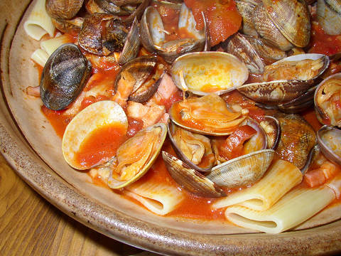 リガトーニのボンゴレロッソ。今日、市場で大きなアサリが出ていた。殆どハマグリ状態。こりゃ買わなきゃと言うことで、生姜焼きからパスタに変更。この手のリガトーニは近所じゃ買えない。通販で買ったもの。唐辛子ガッツリ。ニンニクたっぷり。しかも、生ぽっい沖縄産のニンニクを使用。これが香りが強いんだなぁ。全く。美味い。 ブロッコリーのオリキエッテ。これはね結構日本でも買えますよね。オリキエッテ。料理雑誌で見たとき、何でこんなにブロッコリーを粉砕するのか謎だったけれどソースとしては納得かな。こちらもニンニクたっぷり。唐辛子が良くきいています。あー、美味しい。前世はイタリア人だな。こりゃ。