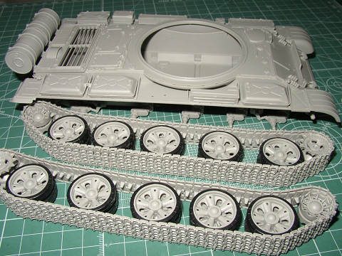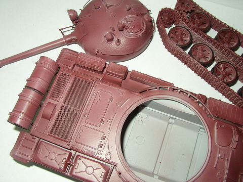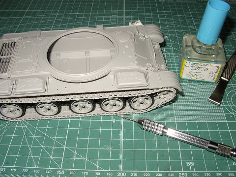 何とか、ほぼ素組みで出来上がりました。明日は、秘密基地でサフをふります。タミヤのスターリンと比べてみるとゴチャゴチャしていますが、完成したときの充実感はあります。手を入れたところは3点くらいかな1 砲塔の手摺りとハッチの取っ手を真鍮線に置き換えたこと2 砲塔前部機銃の銃身の開口3 赤外線ライトのコードを0.38ミリのプラグコードに置き換えたこと画像ではキャタピラが、ずれているように見えますが、塗装の関係でまだ接着していないのでこんな感じです。マルチマテリアルの出来の良いキットです。通販ではこのキットが1500円を切っている店があります。なんとも太っ腹なことか。1500円でこのキットが組み立てられる機会を逸するのは勿体ないことです。