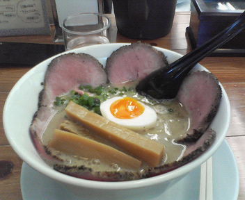 今日は外出にカメラを忘れてしまった。仕方ないので、携帯のカメラで撮影。京都の南部城陽市にある、京都一の人気ラーメン店「俺のらーめん、あっぱれ屋」食べログではいつも上位にランキングされている店である。この店は営業時間が半端じゃない。月曜日から土曜日の11:30~14:00頃まで・・・日曜祝日は休みだし、第4土曜日も休みである。殆ど、普通の社会人には食べられないラーメンだ。しかも、場所がとんでも無い山の中にあるので、車でないと行けない店だ。今日は11:00頃に着いたが、車は私が最後、後から来る人たちは諦めるしかなかったみたい。お客が一巡する12:00過ぎ頃には車を駐めるスペースもあったみたいだけれど。頼んだのは「こくまろ塩チャーシュー950円」凄いのはメンマ。通常の5倍はあろうかというメンマがじっくり柔らかく煮込んである。絶品である。スープは魚介系の味が効いた豚骨スープかな。こってりしていてポタージュスープのような感じだ。麺はパスタのようなモッチリ感ある麺。リングイネのような感じ。洋風のラーメンをコンセプトに作っておられるようです。店はピカピカで綺麗だし、ラーメン屋と言うよりイタメシ屋さん。とにかく3巡目くらいで入店。1時間15分はかかりました。やっと食べられたいという感じでした。好き嫌いの分かれるラーメンですが、私は美味しいと思いました。妻は・・・かなり辛口コメント。「じっくりスープは作っているけれど、一杯入って何が何だか分からない。お互いが主張してはっきりとした味がない・・・美味しいとは思うけれど、一時間待つほどじゃない」「それにビールに合わない」って、そっちかよ。で、運転して連れて行った僕の立場は・・・ orz