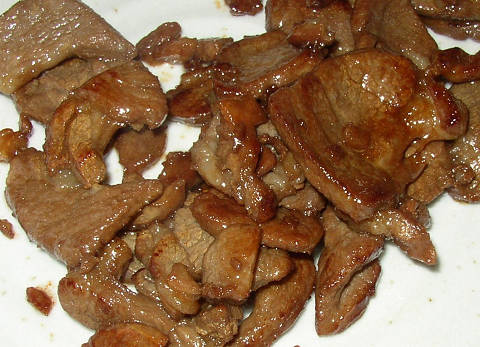 北海道の名物料理と言えばジンギスカン。ジンギスカンと言えば「松尾」のジンギスカンらしい。なにしろ北海道は行ったことがない。とにかく松尾のジンギスカンは凄いよ。と言うのでパック詰めになった一番高級なラムチョップの切り身を買ってきていた。冷凍庫に眠っていたので、今日は一丁奮発してジンギスカンだ。袋の説明では汁ごとフライパンで焼くと言うような説明がされているが、絶対それよりも汁はザルで濾しておき、まず肉を焼く。そして、肉は皿に上げてから玉葱などの野菜を焼く。少々の連れ汁と共に・・・入れすぎると野菜煮込みになる。野菜に火が通ったら肉を戻して、適量の漬け汁で味を調える。これが一番美味しい食べ方だと思っている。 ありきたりだが蕗と厚揚げの煮物 最後に以前作った肉じゃがの残りをバター醤油味で焼いてみた。これが意外とホクホクして美味しい。