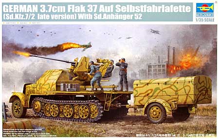 トランペッターの8トンハーフトラックFlak37搭載タイプ。長らく8tハーフと言えばタミヤのSd.Kfz7が主流だったが、トランペッターから発売されると言うのはニュースだった。しかもエッチングとインジェクションで再現されたボディーは凄かった。これは、その上に対空機関砲を搭載したタイプ。箱の中は細かいパーツがギッシリ。見ているだけで十分に楽しい。 ドラゴンからも発売されていて、どうも自国同士で潰し合いをやっているのと言う感じだ。1/35の列車砲が出たときもそうだったが、何故にと言うバッティング。どうしても私としては出来はドラゴンに軍配を挙げてしまうのだがどうだろう。でも。作る方からすれば選択が出来て嬉しいのがホンネ。とりあえず安くなっていたトランペッターの方を手に入れました。