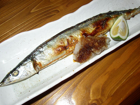 今年の初物です。なかなか獲れなくて一時高値が付いていた秋刀魚。一匹1000円じゃ頂けません。500円でも無理です。150円なら何とか・・・やっと食卓に並びました。秋刀魚。大好きな魚です。大根おろしとスダチを添えて。これで、夕食は完了です。★☆皿は秋刀魚専門の「さんま皿」大きさが半端じゃありません。一匹丸ごと載せられるのが嬉しいです。