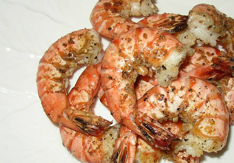 本日の一品。海老の焼き物。名前を考えるというかシンプルすぎて「炒め物」とも「焼き物」とも言えそう。 殻ごとフライパンで煎り焼きしたもの・・・良いのかな?オリーブオイルを多めに挽いて、ガーリックを炒める。香りが出て来たら海老をそのまま投入。塩胡椒で味付けしておしまい。都合5分。(笑) これが意外に美味くてはまっています。気持ち料理という事で足は事前に処理し、背腸も取っています。