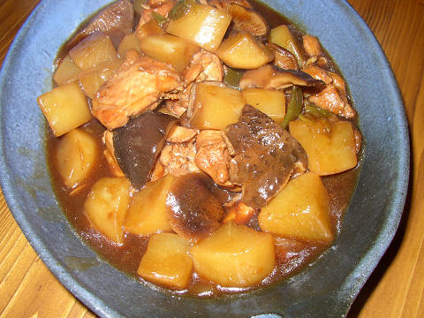 鶏肉と大根、干し椎茸の煮込みあんかけ。鶏肉はフライパンで表面を焼く。大根と椎茸を加えて醤油、砂糖、唐辛子などで味を調え、最期に片栗粉でとろみを付ける。なんとも簡単な料理。しかし、この時期大根が旨くてたまらない。干し椎茸は味がなじみコクがあって好きだなぁ。野菜をガッツリ食べよう。★☆あっと言う間に年も押し詰まってきてしまった。今年も年賀状の目処が立っていないぞ・・・・やばいなぁ。正月も忙しいし・・・・元日から仕事です・・・・泣せめて食べ物で心を癒そう。