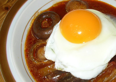 煮込みハンバーグ、目玉焼き添え我が家の定番。今日は付け合わせにブラウンマッシュルームと茄子を入れてみました。なんと茄子がソースの酸味を吸っています・・・・何でだろ。何故、酸味だけか突出して茄子の中に染みこんでいるのかな。とっても不思議な感じがしました。実験は続きます。(笑)★☆今日は、なんとブログ開設2000日目です。