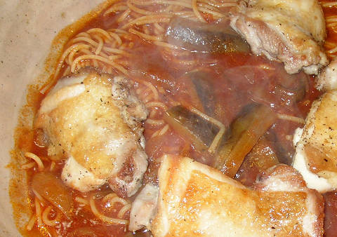 昨日のトマトソースの残りを少し増やして、味を変えて流れのままにグリルチキンスパゲティー。ソースの量が多いのでトマト鍋のような感じです。スパゲティーは完璧にアルデンテに茹で上げてあるので、結構美味いです。ビーフとポークの味に、チキンがドサッと乗っかって、何とも豪華絢爛。後はアサリが入っていれば完璧だったよなぁ。