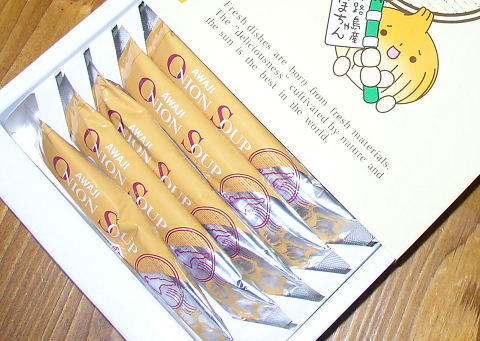 淡路島のオニオンスープ。うづしお名産店スティック状になっている簡単なオニオンスープ。お湯を注ぐだけ。コンソメスープみたいだが、玉葱の旨味が凝縮している。職場でお土産として頂きました。(゚Д゚)ウマー!(゚Д゚)ウマー!実に(゚Д゚)ウマー!(゚Д゚)ウマー!
