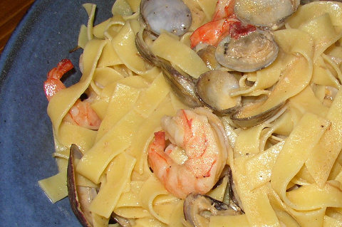 今日、買い物に行くと、海老の冷凍がとても安くありました。本日のお買い得品で、20匹380円。しかも殻ごと切れ目が入って背腸の加工がされている。余りこの手の商品には手を出さないのですが(余分な加工は原材料を信用出来ない)今回はスルーです。アサリと海老を使ってタリアッテレを作りました。ゴチャンと魚介類を入れているのでダシは十分すぎます(笑)クリームソースを作って絡めただけですが(゚Д゚)ウマー!(゚Д゚)ウマー!人類は麺類。本日2食目の麺です。