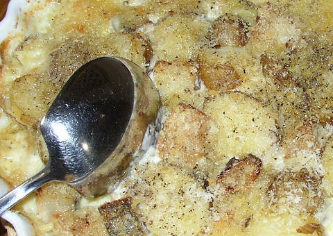 残り物グラタン。以前料理して残った、鱈と新ジャガを使い回してのグラタン。これが意外にいけました。(笑)量的にもバッチリ。残食は完全になくなりました。