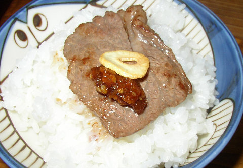 エバラ黄金の味 具だくさんを食べてみる。刺しの多い肉を軽く鉄板で炙り、ニンニクチップに添えてタレを少々。不味かろうはずがありません。 液体のタレと具だくさんとどちらが好きかと言われると差は余り無いのだが、こちらの「垂れないタレ」の方が料理での使用の幅が増えるのではないかとおもう。サラダのゆで卵に合わせても非常に美味しかったし、オードブルの薬味としても十分に使える。タレの革命とも言えるかも知れない。