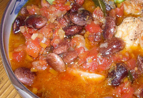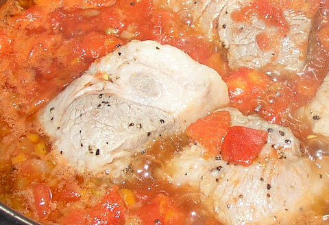 「豚肉と白インゲン豆のトマト煮」製作中。まんまのネーミングですね。(笑)