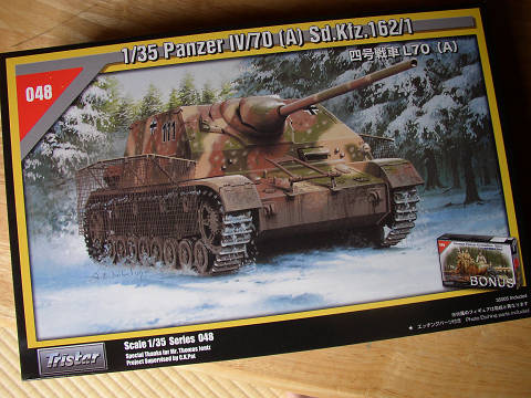 4号駆逐戦車と言えば「ラング」が有名だ。ヒトラーは4号戦車のラインをすべて駆逐戦車ラングに移行すべしと言う命令を出したが、実質、戦況がそれを許さなかったらしい。そこで生まれたのが、現在ある4号戦車の車体に、駆逐戦車の戦闘室を付けるという折衷案、これがこの4号駆逐戦車L70 ZLだ。物資の切迫からシュルツェンも網状のものが使用された。何とも不格好な車体である事か。異形戦車の愛好家としてはワクワクする代物だ(笑)★☆トライスターがが営業不振で長らく生産を中止していましたが、今回この作品でもって,新生トライスターの再出発になります。中国の模型メーカーですが、日本人スタッフが関わっているという事なので頑張って欲しいと応援しています。初回限定分には005番の戦車搭乗兵セットがボーナスとして入っています。