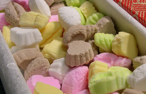 京の菓子と言えば、八つ橋というのがお土産の定番だが、生八つ橋は京都人はあまり食べない。私自身は生の八つ橋だけなら良いが餡やクリームの入ったものは×京の菓子と言えば私的には五色豆か干菓子。これは、鶴屋弦月製のお干菓子。京阪東福寺の駅を降りてすぐのお店。貝殻の形をしていてなんとも上品で美味しい。砂糖の甘さが最高だ。