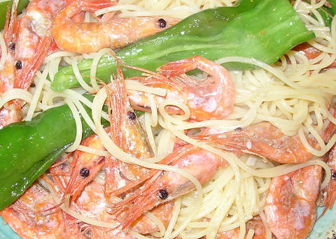 甘エビのペペロンチーノを作る。甘エビを下処理してから、ニンニクをオリーブオイルで炒める。香りが出たら甘エビを投入。上から別の鍋の蓋をかぶせて、押さえるように焼く。塩、唐辛子・・・・海老の香りがこれでもかこれでもかというくらい、ソースに出てくる。ゆで汁を少しと茹で上がったパスタを入れる。待って写真撮るからえっ、食べ始めちゃった?仕方ないなぁ・・・これでもいいや。★☆とにかく甘エビの香りが半端じゃない。生で食べる事が多い甘エビだが、火を通してもとても美味しい。海老は殻ごとムシャムシャ食べました。ミソの部分は行儀悪く吸い込んで・・・(゚Д゚)ウマー!(゚Д゚)ウマー!(゚Д゚)ウマー!(゚Д゚)ウマー! 自分で言うのも何ですが、メチャメチャ美味しいパスタが簡単にできます。