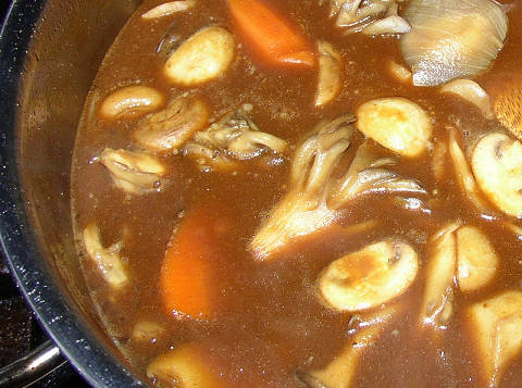 ベタですが、夏はカレーです。キノコを一杯入れたカレーソース。チキンは別に焼いて上からかけます。ベタですが美味いです。