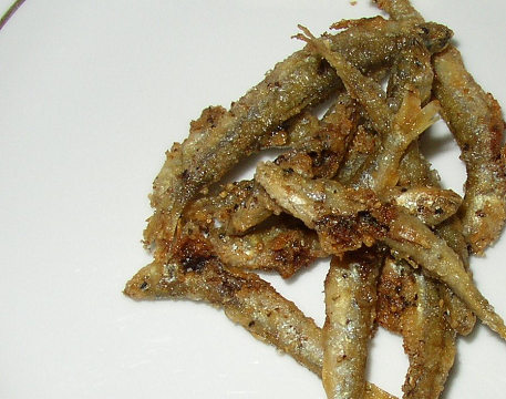 この季節、琵琶湖産の小あゆが市場に出回る。小あゆは一般的にアユの子どもと思っている人が多いらしい。(妻もその一人だった。)琵琶湖の小あゆは固有種で海に下りることなく、琵琶湖で一生を終えるのだ。そして、これ以上大きくなる事はない。この写真の大きさで成魚なのである。料理方法は一般的に唐揚げか天麩羅。今日は少し濃いめの味付けで唐揚げ。酒の肴にピッタリ(らしい)飲まないから分からない。