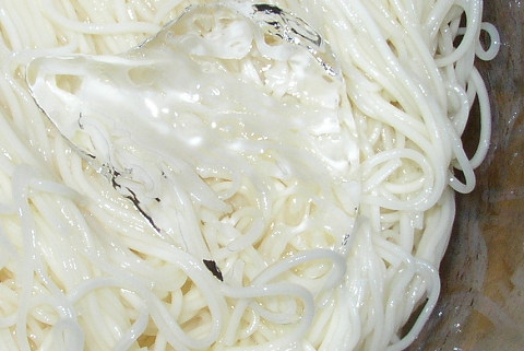 そうめん。奈良県 三輪の山勝製麺の『一筋縄』コシがあって美味しい。日本一の評判有り。吉野葛を使って、油を使っていないから酸化臭がない。喉ごしも違う。夏はこれに限る。 七味は京都祇園、原了郭の『黒七味』と宇治、ヤマサンの『香り七味』共に美味。