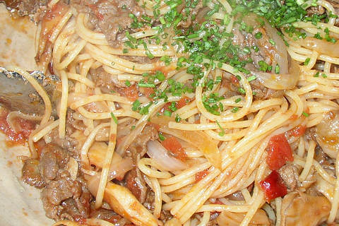 牛肉とキノコのスパゲッティ。オリーブオイルとガーリック、唐辛子で味付けて、トマトソースにしてみた。美味い。しかしながら、牛肉とトマトが悪いわけではないが、大ヒットというわけでもない。食べながら、次は焦がし醤油ガーリック味にしてみるかと思った。料理は生活のスパイスだ。