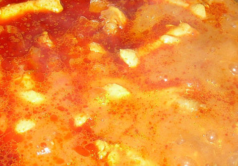 九州、血の池地獄です。と言っても大差ない我が家のカレー。インド風のチキンカレーなので、今回はルーを使わず香辛料で仕上げてます。チキンも骨付きの手羽元を使って野趣満点。ちょっと視点変えれば、魔女のばあさんがヘンデルの足切ってグツグツ煮ていた鍋みたいだよぉ~切ってないの?あっそう。★☆ 学生時代からカレーは定番。ルーを使わずに作るカレーを仲間と競作して食べ廻ったこともあったなぁ。なにせ、クミンをドバッと入れたらそれらしいものになる。クロープにナツメグ、コリアンダー、シナモン・・・私はターメリックがみんなより少なかった。(黄色いカレー嫌い)グツグツグツグツ、とにかく学生は時間があった。コンロの前で本を読みながらカレーを作り、一週間は食べ続けた。今の学生は自炊するのかしら。私が学生だった当時、電子レンジなんて優れものがあったら、もっとバリエーション増えたろうな。