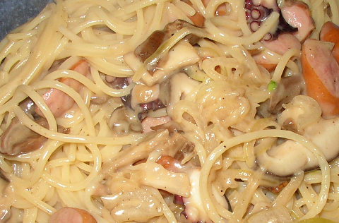 我が家ではパスタ率が高い、今日は蛸と茸のスパゲティー。真蛸の良いのが入ったのでそれを使いました。ソースは自家製。結構、クリーミーで美味しかったです。後はサラダと、数切れのステーキ。フライドガーリック載せ。今日も一日、美味しい生活でした。