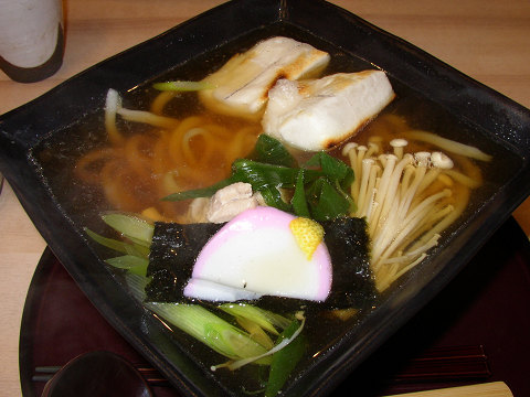 宇治の『うえだ』の力うどん。つゆにパンチがあるので、オーソドックスな感じだが美味い。焼き餅が2個、鶏肉、エノキダケ、海苔、葱、かまぼこ。柚が効いて良い香りです。このうどんは生姜が入っていないタイプです。