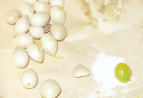 封筒銀杏。封筒の中に入れて、電子レンジに・・・以上。一番簡単な『封筒銀杏』フランスの岩塩で頂きます。味見です。味見。正月の料理はこれが楽しい。(笑)