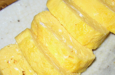 だし巻き卵。鰹の一番出汁をしっかり取っただし汁を使います。卵は京都養鶏生産組合の卵。直売所で買ってきます。色が綺麗ですね。 我が家では砂糖は使いません。甘いだし巻きはダメですね。塩と隠し味程度の醤油のみ。十分に美味いです。