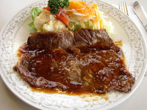 グリル北川メニュー制覇の旅(笑)続いて、グリル北川風焼き肉定食。これにご飯が付いてきます。肉はステーキ肉を薄く切ったもの。柔らかくて美味しいです。タレは醤油ペースの甘辛いもの。ご飯が欲しくなる味の濃さです。定食で一番高く1700円台です。肉を考えればありかなと言う感じですが、お得感はA~Cランチには及ばないかも。★☆生姜焼き定食の画像も頂きました。 選択はパンかライスです。ここのパンはなかなか美味しいです。