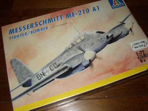 イタレリの1/72 Me-210-A1。この機体を初めて知ったのは望月三起也の『ケネディーナイツ』の中。確か爆破高度よりも高いところにある教会に原子爆弾が落ちると言う設定の話だったような気がする。リモコン式の後方銃が格好良いと思っていた。もしかしたらMe410の方だったかも知れない。主翼がMe210の方が少し後退しているくらいしか僕には判らない。Me410のキットは確かファインモールドのものをジョーシンの店舗改装セールで1000円か何某かで買っていたなぁ。しかも二種。ある場所は判っているが出すのが面倒。機会があったらもう一度確認しよう。