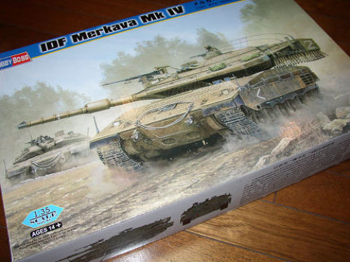 ホビーボス、メルカバMk4 1/35このキットはメルカバの最新型のMk4をモデル化したもの。昨年メンモデルのMk3Dが話題になったが、このキットもなかなかのものである。最大の特徴は値段が高い(笑)定価では8500円、ジョーダンじゃないよ。幾ら何でも高すぎます。しかし、実勢販売価格は割引率が高くて4000円を切って手にはいることもある。難しいキットなのである。(ちなみに私は4000円を切っていました) それとこの車輌の特徴であるチェーンカーテンがインジェクションではなくてチェーンと鉄球で再現されている(そのためにこのキットは高価だと言われている)。賛否両論あるがインジェクションで再現されていたら、チェーンで作り直し、エッチングとインジェクションで作り直したりするのだから、モデラーというのは業が深い。1個1個チェーンカーテンを作っていくのは大変だが、これも模型の楽しみ、これはこれでありというものだ。滑り止めの実感もありアカデミー製と比べるとこちらに軍配が上がりそう。