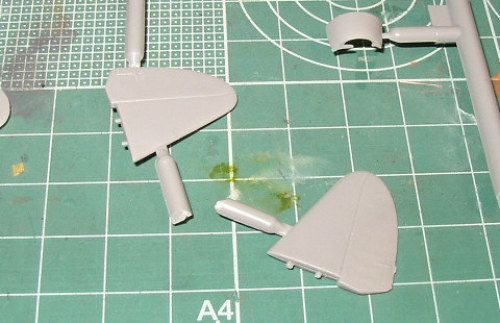 おい、イースタンエクスプレス。ファクトリーシールがかかっていた新品のキットなのに。何故に水平尾翼が一枚足らないの?文句も言えないし、パーツの注文も出来ない。妻、曰く「リスキーやな」 お湯まる君で型どりするか~。ちょっと待て、左右で上下のモールドが違うんじゃないかな。うーん、確認。 エレベーターのトリムタブのロッドだけや。これは自作できるわ。 なんとかなるかな。