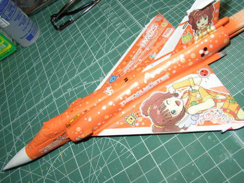 2日に交通事故に巻き込まれてから、保険会社、病院、車のディーラー等々あちこちに電話をかけたり、かかってきたり・・・車がないので出歩くのも億劫で(と言いながらあちこち歩いていましたが)模型を再開しました。年賀状なんか全然年末から手が着いていなかったし、明けに書こうと思っていたらこのざま。今年は居直りましたわ。アイマス機、高槻やよい。メインデカールをコピーして、マスキングテープを切ります。 よっしゃ、よっしゃ、ここまで出来たぞ。あとは機体色の塗装にかかります。H59オレンジ70%+H63ピンク20%+H1ホワイト10%の割合です。あれ、切ったり貼ったり、足したり引いたりしていたおかげで再接着した上部アンテナが飛んで行っている。自作して塗装前に貼り付けておこう。 【中古】プラモデル プラモデル 1/72 ミラージュ2000 アイドルマスター 高槻やよい 「アイドルマスター」 [SP285]【10P18Dec12】【happy2013sale】【画】