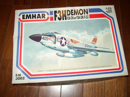 熊 「御隠居ー!てーへんだ。」隠居 「どうしたんだい熊さん。」熊 「どーしたもこーしたもありゃしねぇーよ。最近、京都のボークスに行ったんですがね。エマーのキットが平積みになってるじゃーありませんか。インジェクションじゃ滅多見かけねぇ、F3HデーモンもF94Cも。ビックリしたのなんのって。」隠居 「それにしちゃ、熊さんの持っているデーモンの箱は汚いね。」熊 「そりゃーそーですよ。こりゃ再版ものじゃないですからね。デカールなんぞほりゃこのとおり。」隠居 「なんだい黄ばんでて使えないじゃないかい。」熊 「密柑山から掘り出したもので。」隠居 「買ったんじゃないのかい。」熊 「御隠居。冗談じゃないですよ。1個で充分ですよ。買ったとき中見てびっくりしましたよ。50年前のキット買っちゃったって。」隠居 「そんなに酷いのかい。」熊 「怖くて仮組もしてませんがね、ランナーに付いたパーツなんかはまるでパリの町並みなんでさ。」御隠居 「熊さん、判りにくいね。それって放射状に付いている創世記キットのあれかい。」熊 「そうそう、それでして」御隠居「それにしても再版を喜んでいるみたいだね。」熊「そりゃ出来の悪い子ほど可愛いって言いますからね」御隠居「だったら早く作りなさいよ」熊「そりゃ、無理ですよ御隠居、出来の悪いモデラーですから」 ★☆ 最近では見かけなくなりましたね。凄まじいランナーです。右上がシャンデリゼ通りで・・・・ プラモデル F3H-2/2M デーモン EMHAR(エマー)