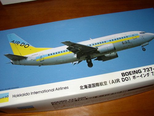 北海道千歳空港に駐機していたAir Do(北海道国際航空)のボーイング737-500ホントに小さな機体です。このキットは旧塗装バージョン。ネットなどではほとんど入手不可能になっていますが、まだ模型店の店頭在庫で並んでます。行きつけの模型屋さんではほとんどの店で置いてあった。当然、発売されたばかりの新塗装バージョンの方が多いですが。とりあえずなくなりそうな方からゲットしました。このキットはピーチの機体より塗装が簡単そうですね。プラモデル 1/200 AIR DO ボーイング737-700[ハセガワ]《取り寄せ※暫定》 新塗装バージョンです。B737-700です。こちらの方が、センスが良いような感じがします。ウイングレットが格好良いですね。