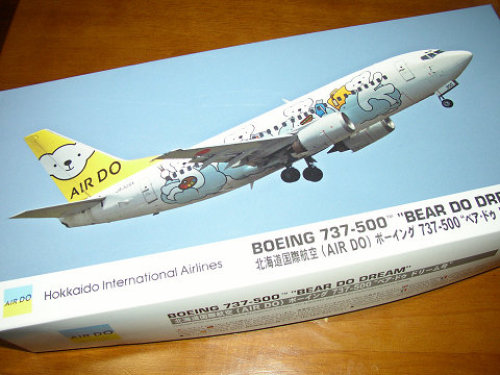 北海道国際航空(AIR DO) のBear Do Dream 塗装です。このキットは限定ものですが、店頭在庫でも手に入りやすいです。今回の北海道強行突破旅行で実機を見ることが出来ました。残念ながら、新千歳空港の片隅に駐まっていましたが、画像は撮れませんでした。とりあえず寒さと吹雪にビビリましたよ~。実機も可愛い飛行機です。初めはコアラだと思っていましたが・・orz プラモデル 1/200 北海道国際航空(AIR DO) ボーイング737-500“ベア・ドゥ ドリーム号”[ハセガワ]《取り寄せ※暫定》
