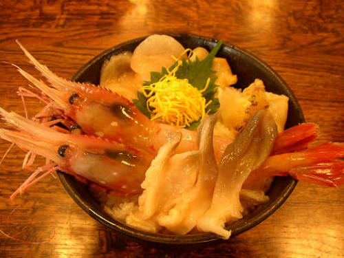 札幌の場外市場で頂きました。ぼたん海老と貝の丼。イクラやウニや鮪が良いのは判っていますが、北海道で貝を食べたかったので、これにしました。やはり鮮度の良い貝は美味いです。ぼたん海老も関西で食べるものとは全然違います。 一番人気の三色盛りはこちら、ぼたん海老の丼より1000円高いです。どうせなら、こっちにと言う仲間が多かったですよ。美味いのは解っていますとも。★☆しかし、観光客値段になっている感じがしてお得感はありません。ただ、お店のご厚意により、毛ガニのみそ汁をサービスして頂きました。ありがとうございました。