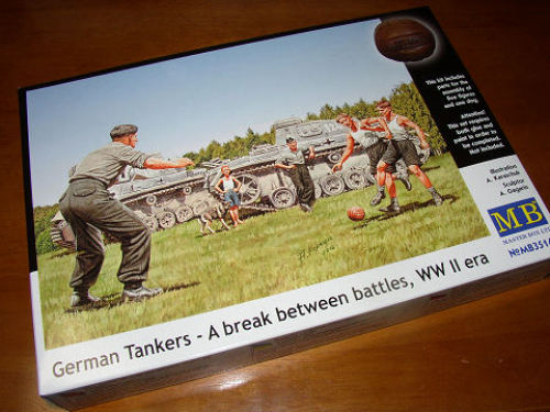 マスターボックの「ドイツ戦車兵束の間の休息」(いろいろ呼び方があるみたいだが)German Tankers A break between battles,WW2 eraを直訳するとそんな感じ? このキットはどうしても欲しかったので、予約を入れたものです。模型屋でも一時期並んでいましたが今では店頭から消えています。ほのぼのとしたシーンです。ウクライナ・マスターボックス プラモデル 1/35 独戦車兵4体+少年1体&犬-夏のサッカー試合[バウマン]《取り寄せ※暫定》 【1/35 独 戦車兵4体 少年1体 犬 夏のサッカーゲームシーン プラモデル マスターボックス】マスターボックス MB35149 1/35 独 戦車兵4体+少年1体&犬-夏のサッカーゲームシーン プラモデル(C4932) 通販でもかなり品薄になってきたみたいです。 ★☆昔はタミヤのフィギアが欲しくてキットを買ったのですが、最近では中国、東欧のフィギアが欲しくてキットを買います。タミヤの技術とセンスをすれば、素晴らしいフィギアが出来ると思うんだが。MMの1番が戦車搭乗兵だったのに・・・・・魅力的なフィギアがないので寂しいです。