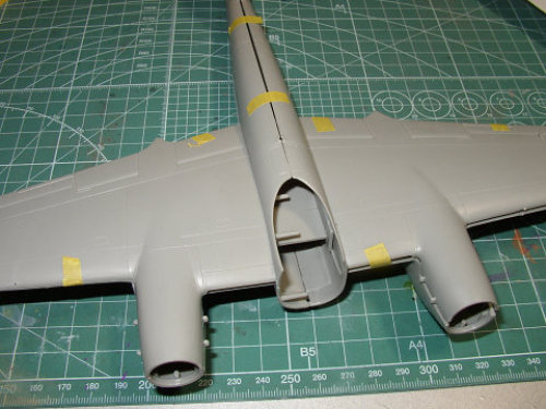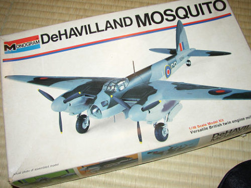 モノグラムの1/48 デ・ハビランド・モスキート。結構、反りがあったり合わないところがありますが、表面に施されたリベット、モールドの強弱は最高です。この製品は1978年のバンダイのものなのですが、金型自体は1965年と言うから驚き。1965年でっせ。日本の当時の飛行機模型から考えると雲泥の差ですね。「ごきげん最高モノグラム」と言われただけありますね。★☆1965年当時、私が作っていたのは、三共ピーナッツかカウボーイ印のマッチ棒拳銃。舶来品のプラモデルは高嶺の花でしたね。それでも、グンゼ産業(当時)がレベルの製品を日本で発売してくれたので、1/72の100円シリーズでレベルという会社は知りました。一年に一回ぐらい1/32サイズの模型も買えました。エァフィックスも1/72の袋入りのキットを買っていました。200円だったかな。 モノグラム・・・買った覚えがないのです。素晴らしい会社だったんですね。この頃のものはやたらに改造したり、修正したりするのは論外ですね。時代の重さを知るべし。そんな感じです。★☆このキットもお手つきキットでただ同然です。前の持ち主が夜間戦闘機でも作ろうと思ったのか、機首部分を切り込んでいました。(別パーツが付いているので変更します。当然芋付け)ラインからかなり外れていたので、修正して綺麗に揃えました。主翼と胴体が反っています。これで前の持ち主が製作を諦めたのか、それともタミヤの1/48が出たのでやる気無くしたのか・・・いずれにしても勿体ない。