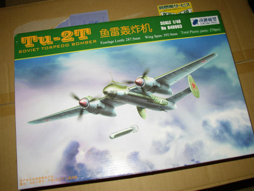 1/48 Tu-2T 魚雷搭載機60個目の模型はツポレフTu-2T。新しい中国の模型会社です。最近、雨後の竹の子みたいに新会社から模型が発売されるのには驚きだ。広東にあると言うのもなかなか興味深い。今まで上海や香港というのが中国模型のイメージ。これからの製品展開に期待を抱いてしまう。何だか60年代の日本模型界の様子みたいだなぁ。★☆それにしても他国の領土までうろうろ出てこないで、平和な模型産業で兵器を作っている方が健全なんだよな。