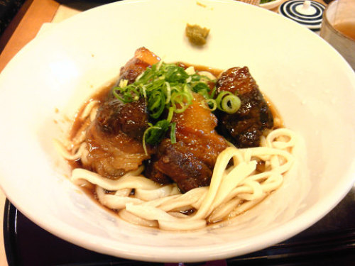 宇治のうどん店「うえだ」に新メニューが登場しました。角煮うどん。(冷・温)数量限定 850円今日は冷タイプの角煮うどんを食べてみました。角煮はトロトロという感じではありませんがしっかりと味が付いて美味いです。うどんは相変わらずの美味さ。ただ全体を見て言えることは、バランス的には少し角煮が勝っています。柚胡椒も付いてあっさりとした出汁なのですが、角煮の味が濃いために、角煮ばかりが目立ちます。ただ角煮がこれ以上薄味だと美味くありません。難しいところです。温タイプの味はどうなっているのか試してみたい気はします。若い人には、肉喰ったと言う満足感は大きいです。