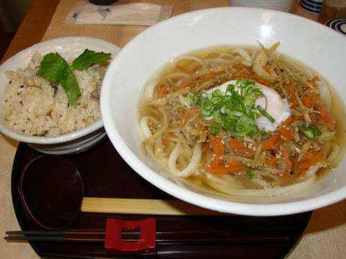今月の「うえだ」の定食。温玉牛蒡うどんとしめじご飯 800円柚の香りと牛蒡の歯ごたえが美味いです。胡麻も効いていて香ばしい。しめじのご飯と香の物が付いてリーズナブルです。