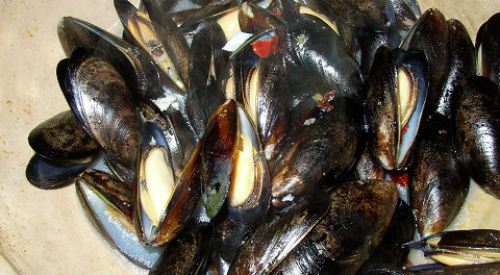 ムール貝。チリ産の真空パック。塩茹でにされている。ワインで一蒸し。あっと言う間にワイン蒸しの出来上がり。これがメチャクチャ美味しい。たいして高級な貝ではないのだけれど・・・ロッス冷凍)チリ・ボイルムール貝 500g 【開店セール1212】【RCP】